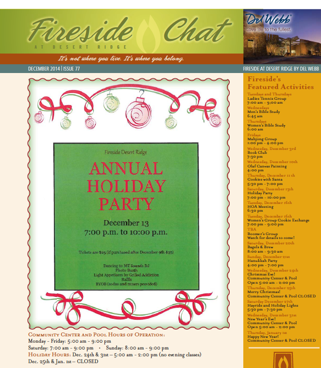 Read more Fireside neighborhood holiday news in the December 2014 issue of the Fireside Chat.