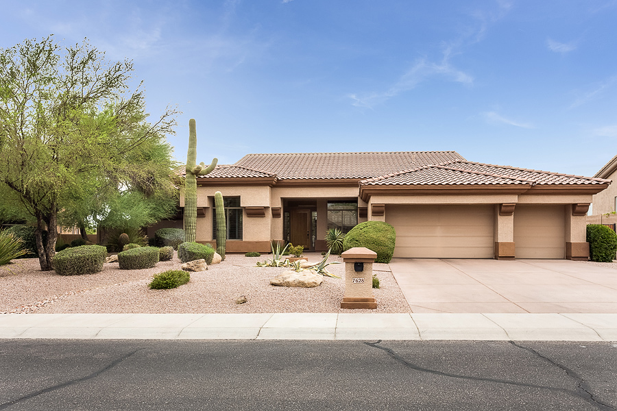 Open Saturday and Sunday 1-4pm. Enjoy this bright and spacious home located in the highly desirable neighborhood of Pinnacle Reserve. Home is situated on a 17,000 square foot premium view lot and includes 3 bedrooms + Den/office with built-ins and 2.5 bathrooms. Many upgrades/updates in this amazing home- including brand new granite counters in the master bathroom along with a fully updated kitchen with SS appliances, granite counter tops and updated and replaced cabinetry in 2012. Other Features to appreciate include the pebble-tec play pool, N/S exposure, and 3 car garage with attached cabinets. This open house will be held by Todd Smith on Saturday and Jimmy Carlson on Sunday. 7628 E La Junta Rd Scottsdale, AZ 85255