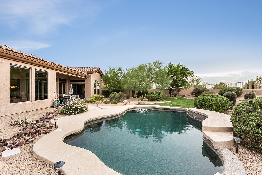 Open Saturday and Sunday 1-4pm. Enjoy this bright and spacious home located in the highly desirable neighborhood of Pinnacle Reserve. Home is situated on a 17,000 square foot premium view lot and includes 3 bedrooms + Den/office with built-ins and 2.5 bathrooms. Many upgrades/updates in this amazing home- including brand new granite counters in the master bathroom along with a fully updated kitchen with SS appliances, granite counter tops and updated and replaced cabinetry in 2012. Other Features to appreciate include the pebble-tec play pool, N/S exposure, and 3 car garage with attached cabinets. This open house will be held by Tyler on Saturday and Jimmy Carlson on Sunday. 7628 E La Junta Rd Scottsdale, AZ 85255