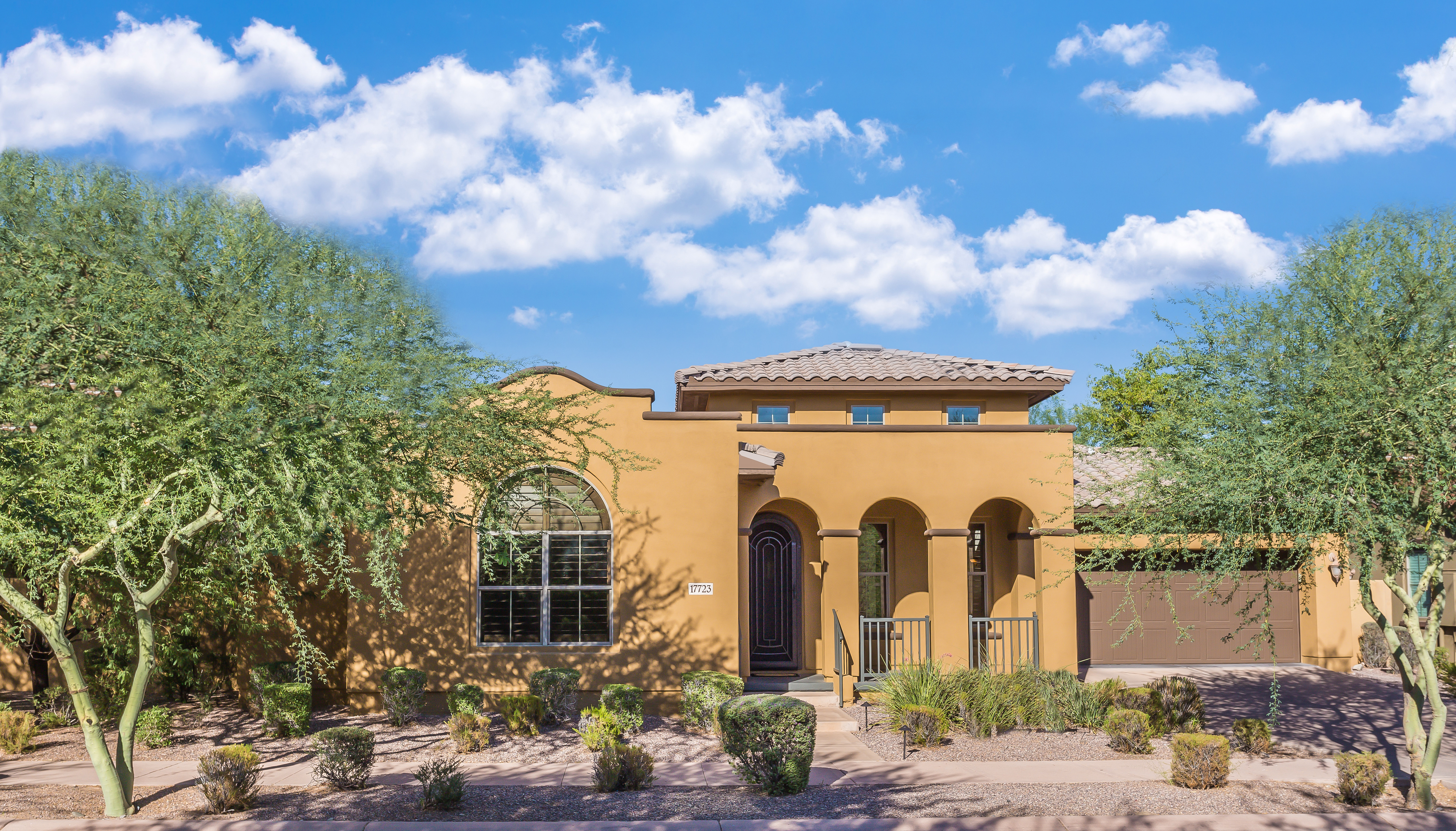 Open Sunday 1-4pm. A gorgeous, contemporary 4 bed plus den and bonus room, 3.5 bath DC Ranch home on premium lot with expansive mountain vews. Freshly painted interior. Fully loaded with designer touches throughout, this immaculate, light-filled home is move-in ready. Large, gourmet kitchen is graced with granite counters, extra-large island with sink, gorgeous cabinetry, butler’s pantry. Master suite features a large walk-in closet, double sinks, gorgeous granite counters, tub and shower with stone surround, and connected nursery/exercise room. Extra-large bonus room perfect for playroom or game room. Fantastic community amenities including pools, parks, hiking and biking trails. Jimmy Carlson will host this open house. 17723 N 93rd Place, Scottsdale, AZ 85255