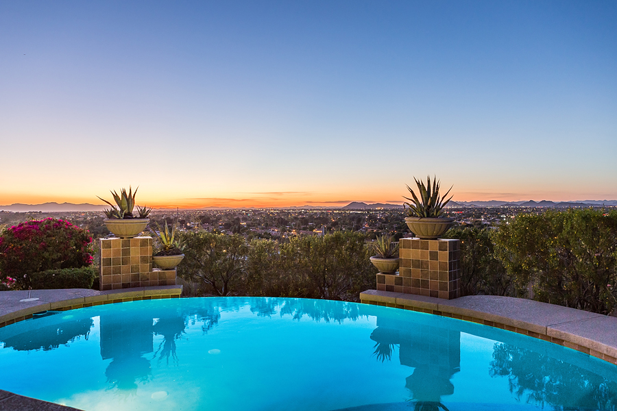 Open Sunday 1-4pm. Breathtaking Panoramic Views 5bed/5.5bath 8,898sqft, 5+ car garage Mediterranean style home on elevated cul-de-sac lot. Grand two-story entry and prestigious split floor plan; upper Master Ensuite w/ 4 bdrms & private terraces. Luxurious finishes; Granite/Marble decorative inlays and countertops, custom alder cabinetry and millwork, travertine and cherry wd flooring. Gourmet kitchen w/ granite, Sub-Z fridge/freezer, SS dbl Ovens, SS dbl dishwashers, dbl work islands. Media rm, game rm w/kitchen and wine cellar, playroom, home office, dbl laundry. Family room w/ ample built-in window seating leads to large covered patio, negative edge pool w/ water feature, grassy play area and sport court. Jimmy Carlson will host this open house on Sunday. 920 E Waltann Ln, Phoenix, AZ 85022