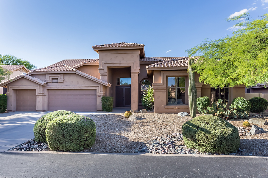 Open Sunday 1-4pm. Elegant custom redesign in this 4 bed/2.5 bath, 2,501sqft DC Ranch home on quiet cul-de-sac in gated community. Enjoy soaring 10′ ceilings, open concept kitchen, dining and family room area with hardwood flooring throughout installed Jan. 2016. Kitchen with designer finishes including SS appliances and range hood, gas cooktop, slab granite countertops, large island with breakfast bar and pendant lighting installed Jan. 2016. Master bathroom exudes soothing spa-like feel with 18″ travertine flooring, shower and bath surrounds, slab travertine countertops, custom lighting, double sink vanity, separate water closet, and large walk-in closet. Updated guest bathroom includes slab Travertine countertops, 18″ travertine flooring and tub surround and a double sink vanity. Jeff Sibbach will host this open house on Sunday. 9452 E Mohawk Lane, Scottsdale, AZ 85255