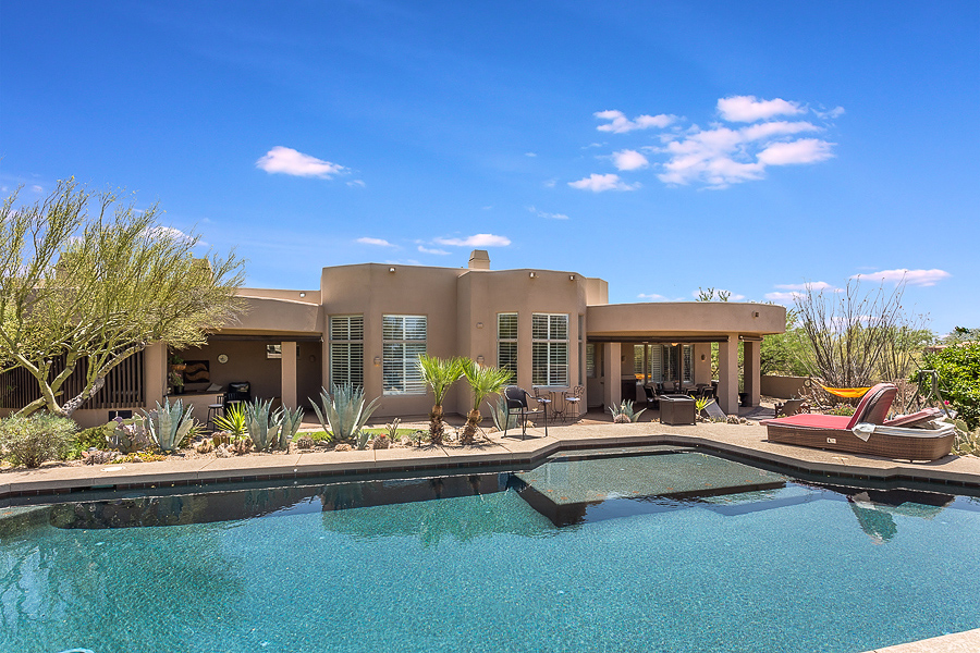 Open Friday, Saturday and Sunday 1-4pm. Beautiful 3bed/2.5bath, 3,428 sqft custom home with 3-car garage on an acre + lot privately situated across from the Sonoran Preserve. Entertainer’s kitchen with granite, stainless steel and open to large wet bar and family room. Large covered patio with built-in BBQ and fireplace, looking on to sparkling pool and captivating desert views. Nicely updated master and 2nd bath. Luxurious guard gated community of Sincuidados with walking/ biking paths, lighted tennis courts, a community clubhouse and 24 hour roaming security. This open house will be held by Jimmy Carlson on Friday and Sunday and by Phil Sexton on Saturday. 8400 E Dixileta Dr Unit 120 Scottsdale, AZ 85266