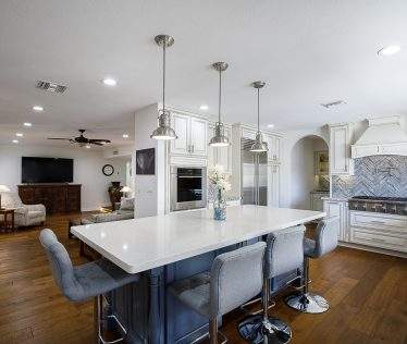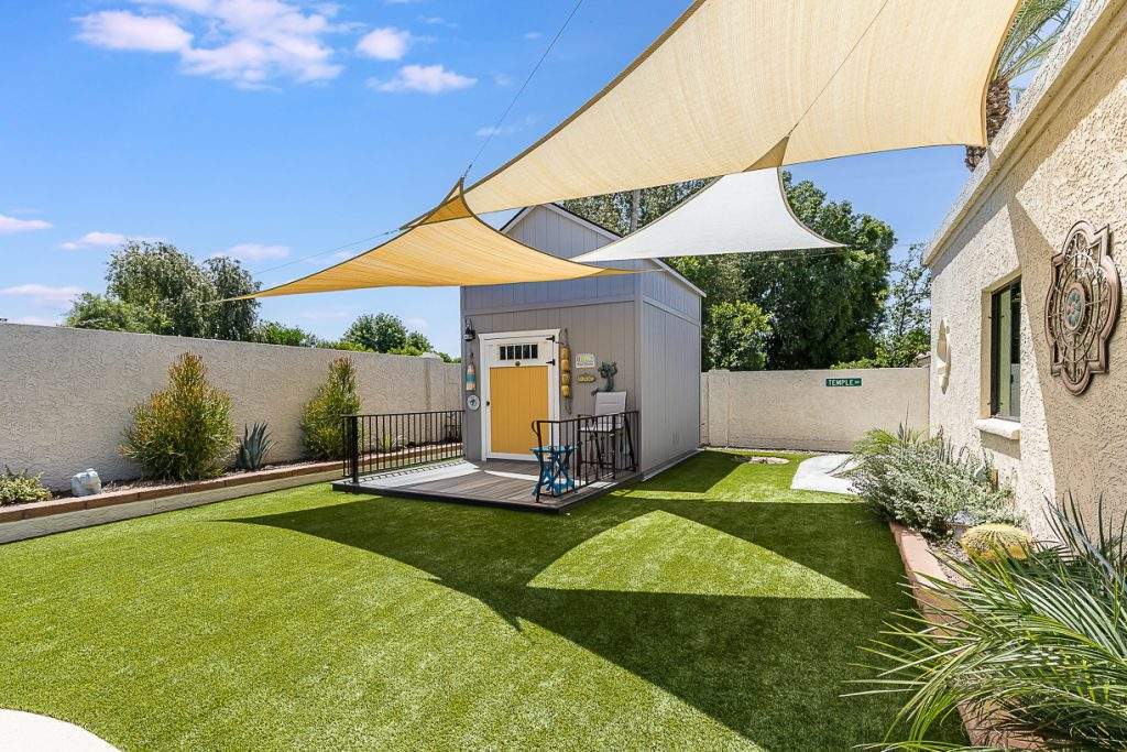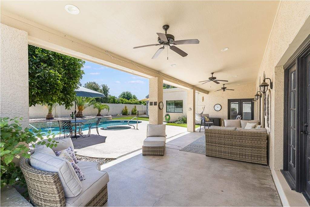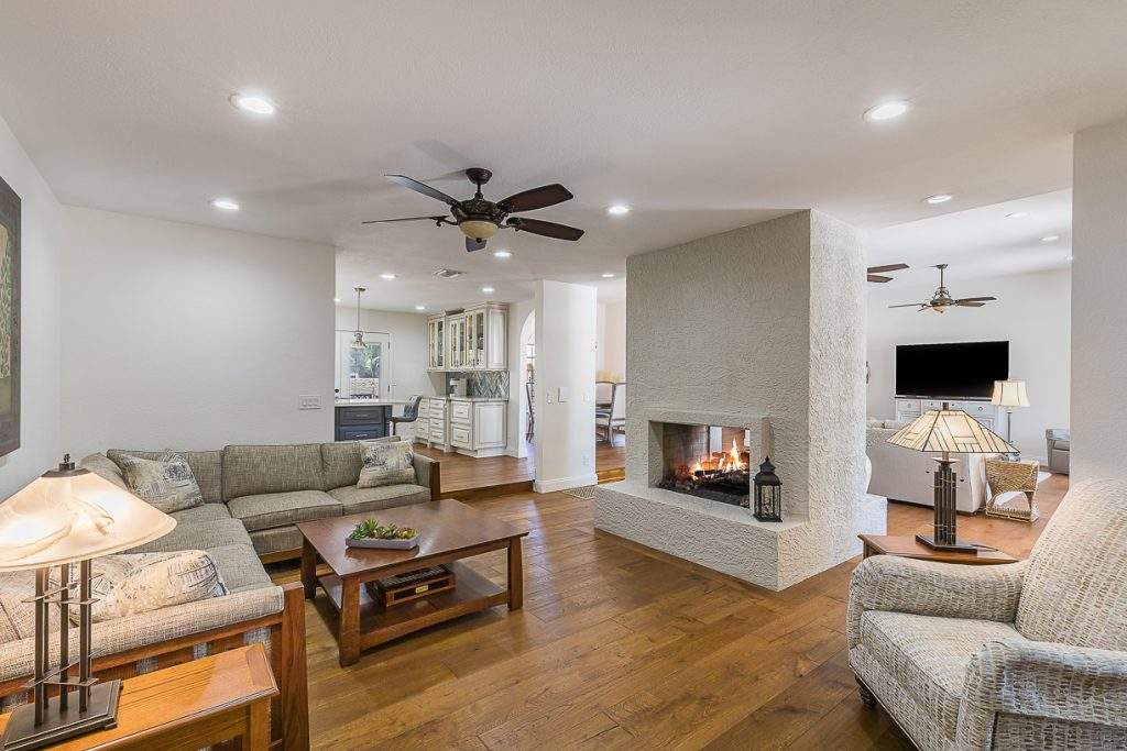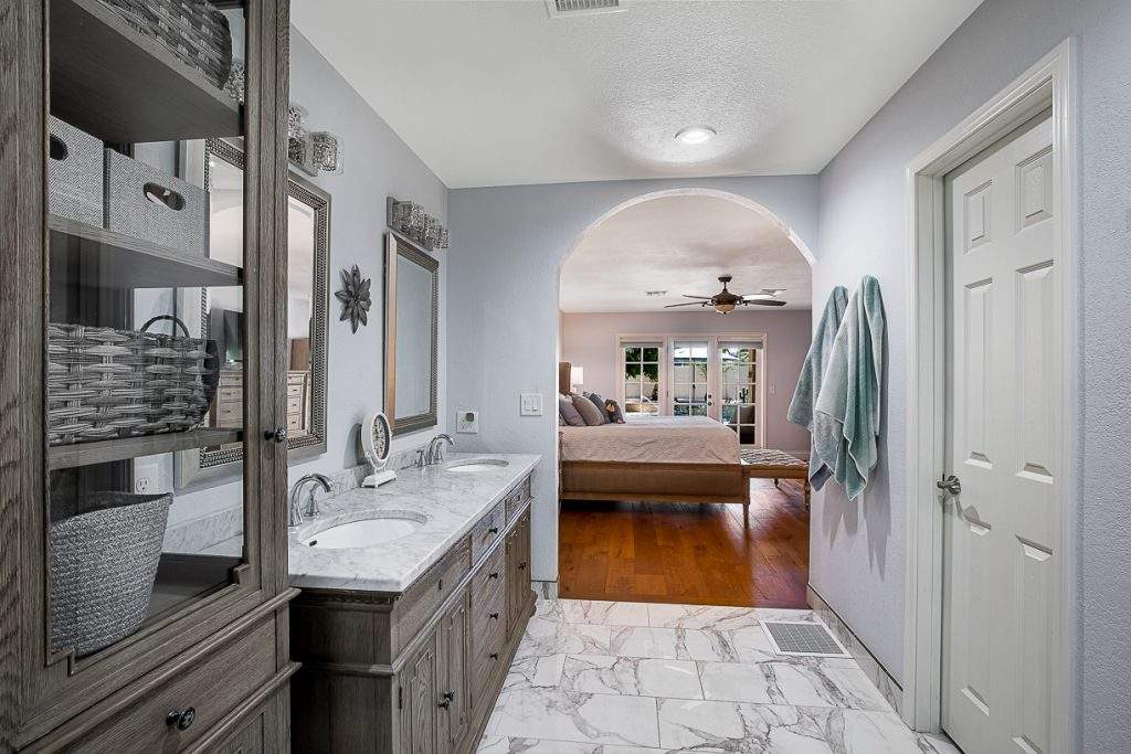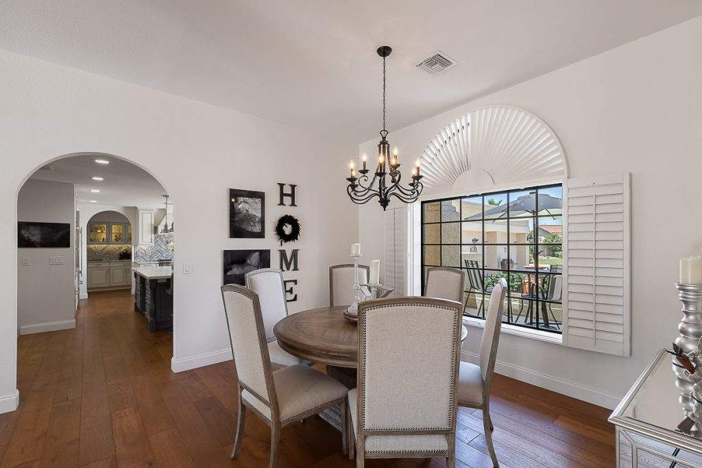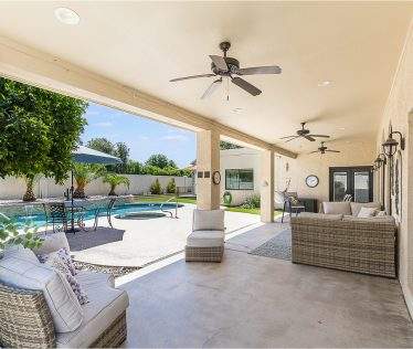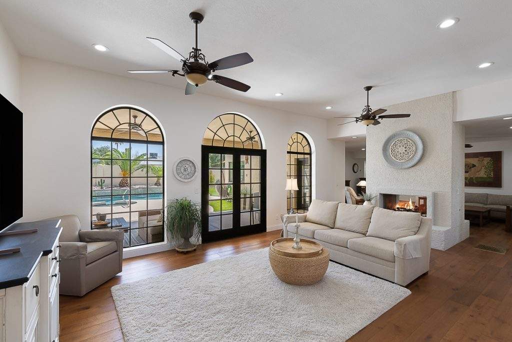 Step into luxury living at its finest with this stunning one-level home nestled in a serene cul-de-sac. From the moment you arrive, the inviting front courtyard adorned with travertine pavers sets the tone for the elegance awaiting within. Meticulously remodeled, this home offers a newly opened floor plan with thoughtfully added arches and expanded openings throughout. Hardwood floors grace the living spaces, complemented by custom window treatments, including special blackout shades in the kitchen. Entertain with ease in the great room, boasting French doors leading to the backyard oasis and a two-way fireplace adding warmth and ambiance. The gourmet kitchen incorporates custom cabinetry, granite and quartz countertops, and top-of-the-line appliances including SubZero fridge, Thermador gas cooktop with pot filler and hood, and Wolf oven. The charming glass tile backsplash, custom hidden Lazy Suzanne, and breakfast bar cater to both convenience and style. Indulge in luxury within the master suite, boasting a large walk-in closet and a spa-like bathroom featuring a custom Restoration Hardware vanity with quartz countertop, dual sinks, and a walk-in shower adorned with marble tile, seating bench, and multiple shower heads. Guests will feel pampered in their own suite, complete with storage closet and a stylish bathroom showcasing a furniture-grade vanity and a walk-in shower with tile surround and bench. The garage is a car enthusiast’s dream, offering 4 deep stalls, epoxy flooring, and ample storage space. Additional features include a tankless hot water heater, new central vac system, and a laundry/butler’s pantry with custom cabinetry and granite countertops. Two new AC units ensure year-round comfort. Step outside to your private retreat, where a covered patio with fans overlooks a sparkling pebble tech pool and spa, surrounded by pavers and lush faux grass. The pool house with deck and vaulted ceilings provides the perfect spot for relaxation, while an orange tree adds a touch of charm. Don’t miss the opportunity to make this exquisite property yours today!