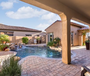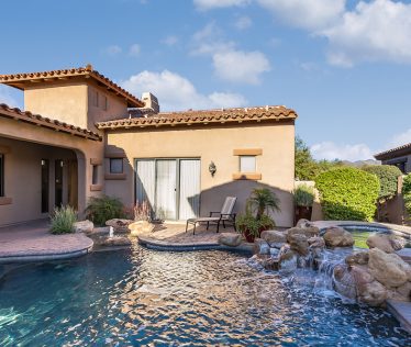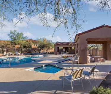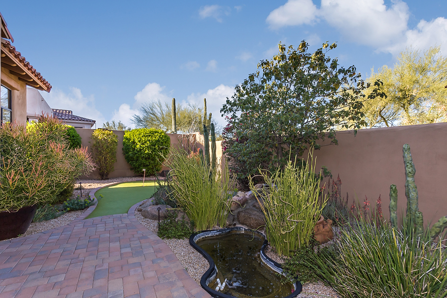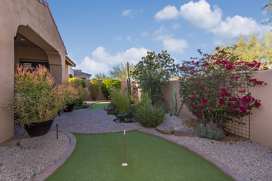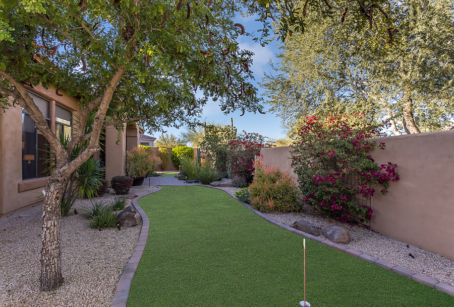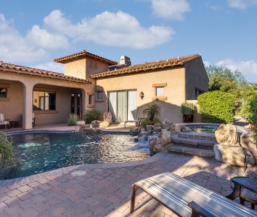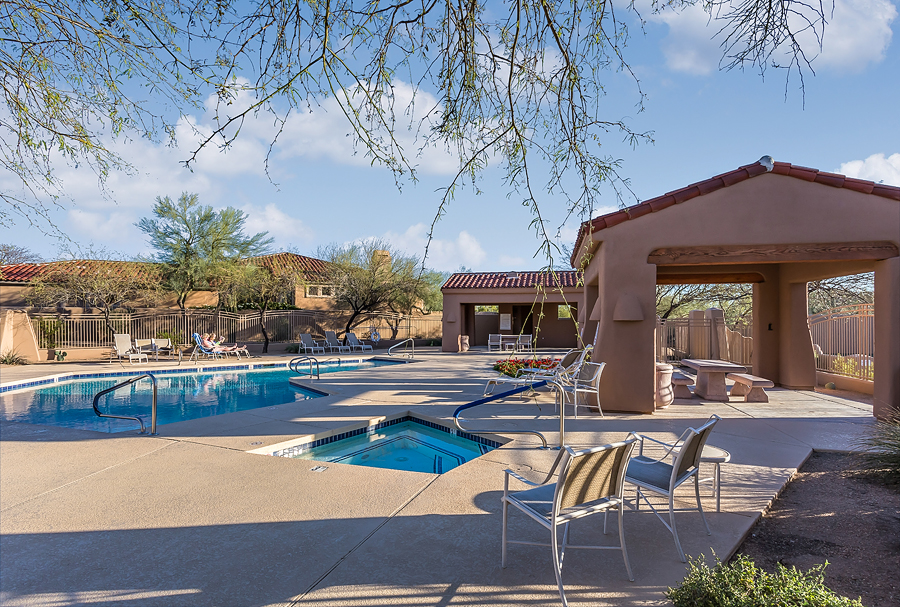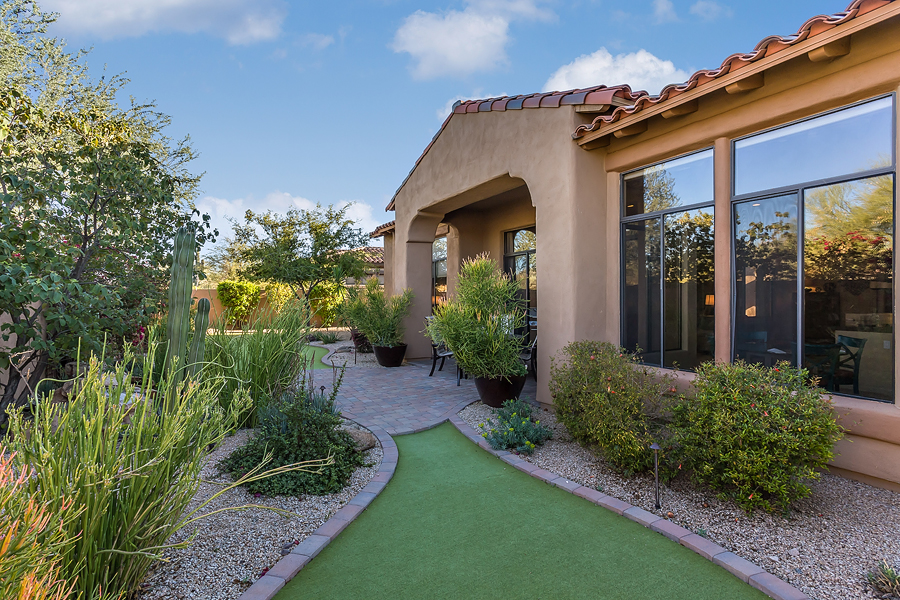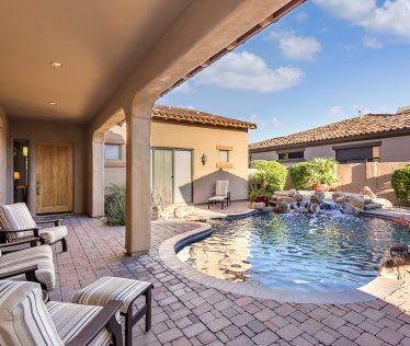 Simply elegant, light-filled 4 bed/3.5 bath, 2,882 sqft home plus casita in desirable Los Vientos within Raptor Retreat in Grayhawk is a must see! This immaculately maintained, open floor plan boasts beautiful finishes such as Venue A blinds, surround sound speakers, brushed nickel hardware, ample storage. Entertainers’ kitchen open to family room with gorgeous granite tile counters, spacious island, maple cabinetry with pull outs, SS appliances, stylish backsplash. Master suite a true retreat with sitting room, his and hers vanities and closets, gorgeous custom drapes. Oversized casita features kitchenette, fully remodeled bath with designer touches. Tranquil, private backyard with covered patio, putting green, BBQ area. Sparkling pool and spa with water feature within interior courtyard. Spacious 3-car garage.