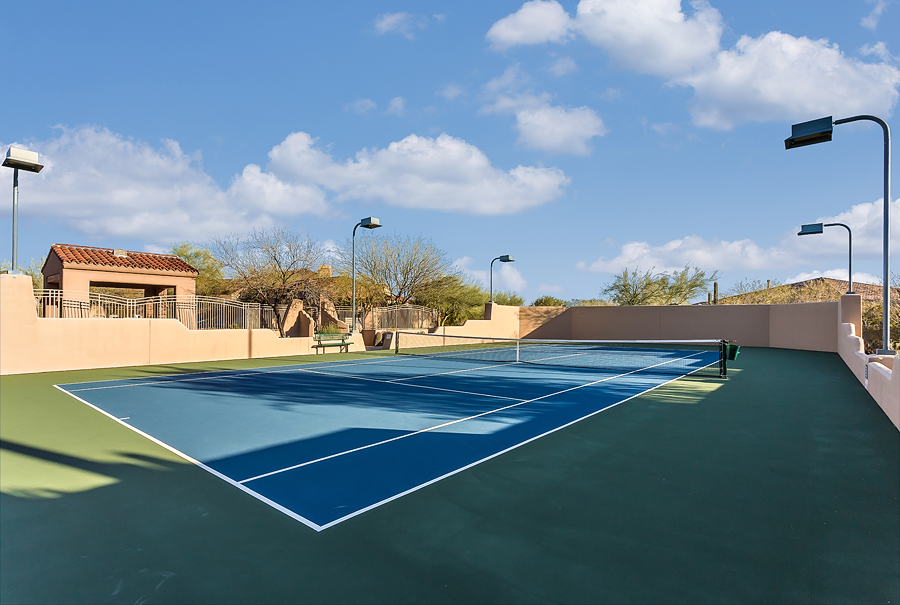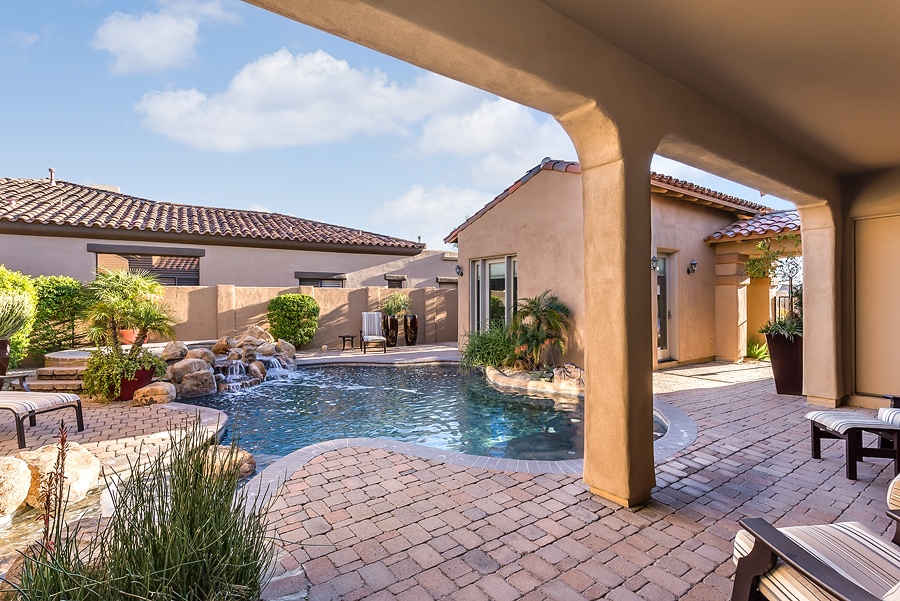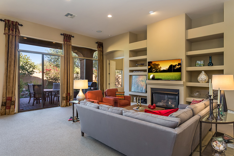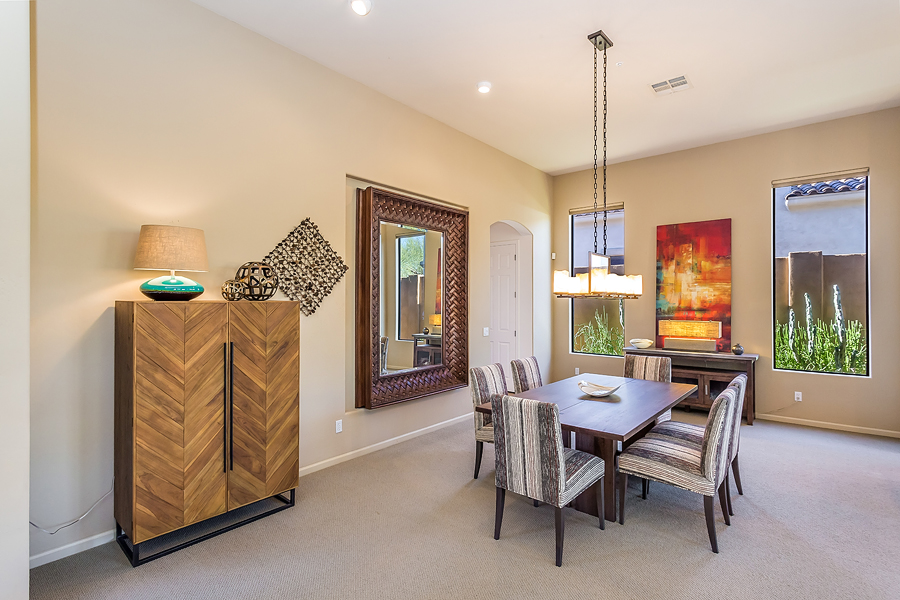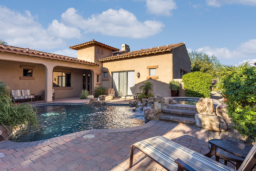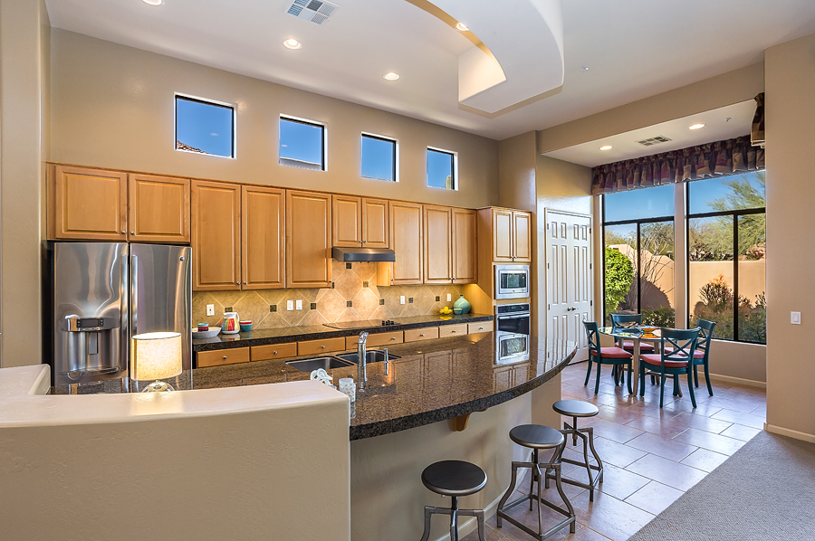 Simply elegant, light-filled 4 bed/3.5 bath, 2,882 sqft home plus casita in desirable Los Vientos within Raptor Retreat in Grayhawk is a must see! This immaculately maintained, open floor plan boasts beautiful finishes such as Venue A blinds, surround sound speakers, brushed nickel hardware, ample storage. Entertainers’ kitchen open to family room with gorgeous granite tile counters, spacious island, maple cabinetry with pull outs, SS appliances, stylish backsplash. Master suite a true retreat with sitting room, his and hers vanities and closets, gorgeous custom drapes. Oversized casita features kitchenette, fully remodeled bath with designer touches. Tranquil, private backyard with covered patio, putting green, BBQ area. Sparkling pool and spa with water feature within interior courtyard. Spacious 3-car garage.