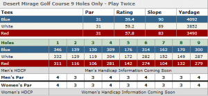 Built in 1999 by Kevin Wurgler and Bill Phillips, Desert Mirage Golf Course offers distinct facilities packed with PGA professional instructions, golf pro shop and 9 holes of challenging golf. The Stunning grounds that make up this course are highlighted by green rolling hills, fairways, range. The course features four par 4’s and five par 3’s at a wide range of distances.